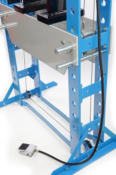 Raamwerkpersen als deze zijn uiterst veilig in het gebruik, doordat ze voldoen aan de meest recente CE-normen. Zo is het onderstel voorzien van verschillende extra verstevigingsbalken en zijn de borgpennen van de hoogteverstelling voorzien van diverse veiligheidsclips. Zowel de lier als de katrollen zijn compleet afgesloten en de persblokken zijn voorzien van opgelaste randen, zodat ze tijdens het persen niet kunnen wegschieten.