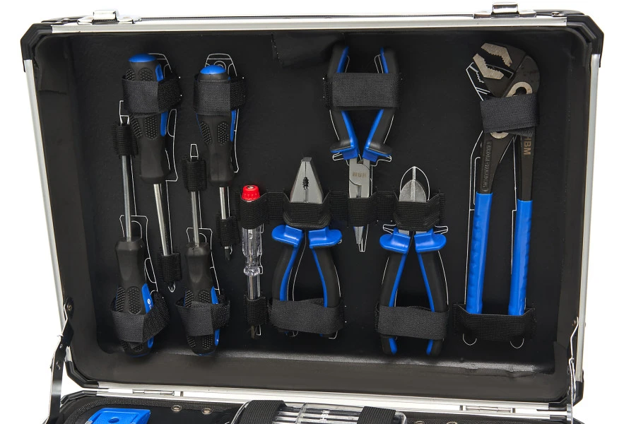 Een compleet uitgeruste gereedschapskoffer is een ware must-have voor professionele vakmannen én doe-het-zelvers die hun werk serieus nemen. Deze koffer bevat al het nodige gereedschap om kleine en grotere werken tot een goed einde te brengen. De inhoud van de koffer is overzichtelijk georganiseerd dankzij aparte uitsparingen in de bodem en het deksel. Hierdoor blijven alle tools mooi op hun plaats liggen. Ook vind je zo snel het nodige gereedschap en leg je het altijd op de juiste plaats terug.