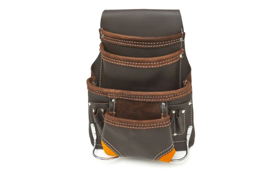 Met deze HBM Professionele Leren Gereedschapszak met 10 vakken neem je klein gereedschap en materialen altijd veilig mee op de werkplaats of bouwwerf. De zak is eenvoudig mee te nemen, waardoor je makkelijk bij al je spullen komt voor de klus waar je mee bezig bent. Daarbij beschikt hij over verschillende vakjes en zakjes, waaronder twee houders om een hamer in te plaatsen.