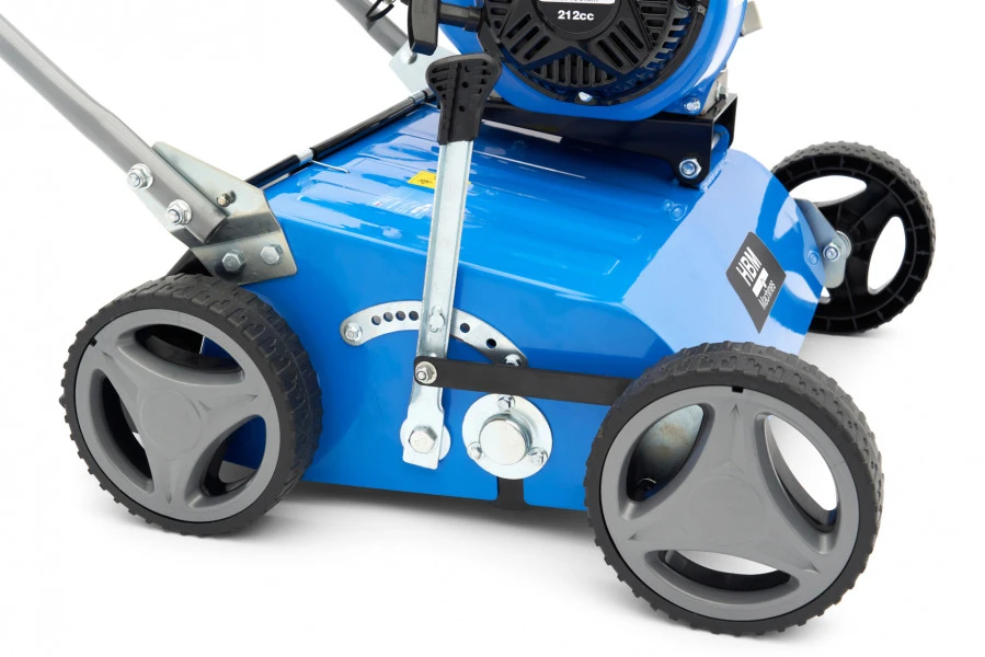 Dankzij de grote wielen manoeuvreer je gemakkelijk over zelfs heel oneffen ondergrond. Het brede loopvlak zorgt er dan weer voor dat je gazon tijdens gebruik beschermd blijft.