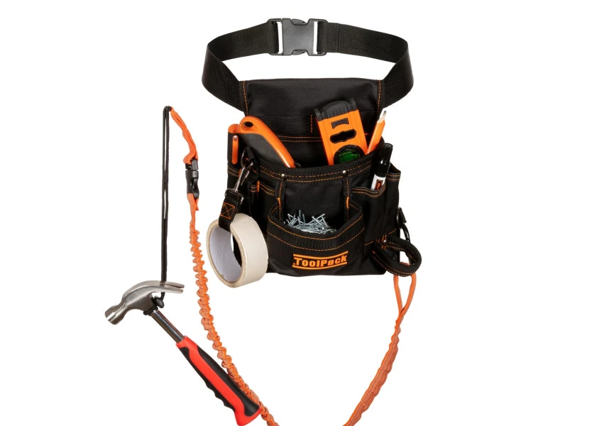 Ontdek de ToolPack gereedschapsgordel met elastische gereedschapskoord, ontworpen voor ToolPack tool organizers. Deze heuptas (20x10x30cm) met verstelbare draagband is een handige metgezel voor professionals en doe-het-zelvers.